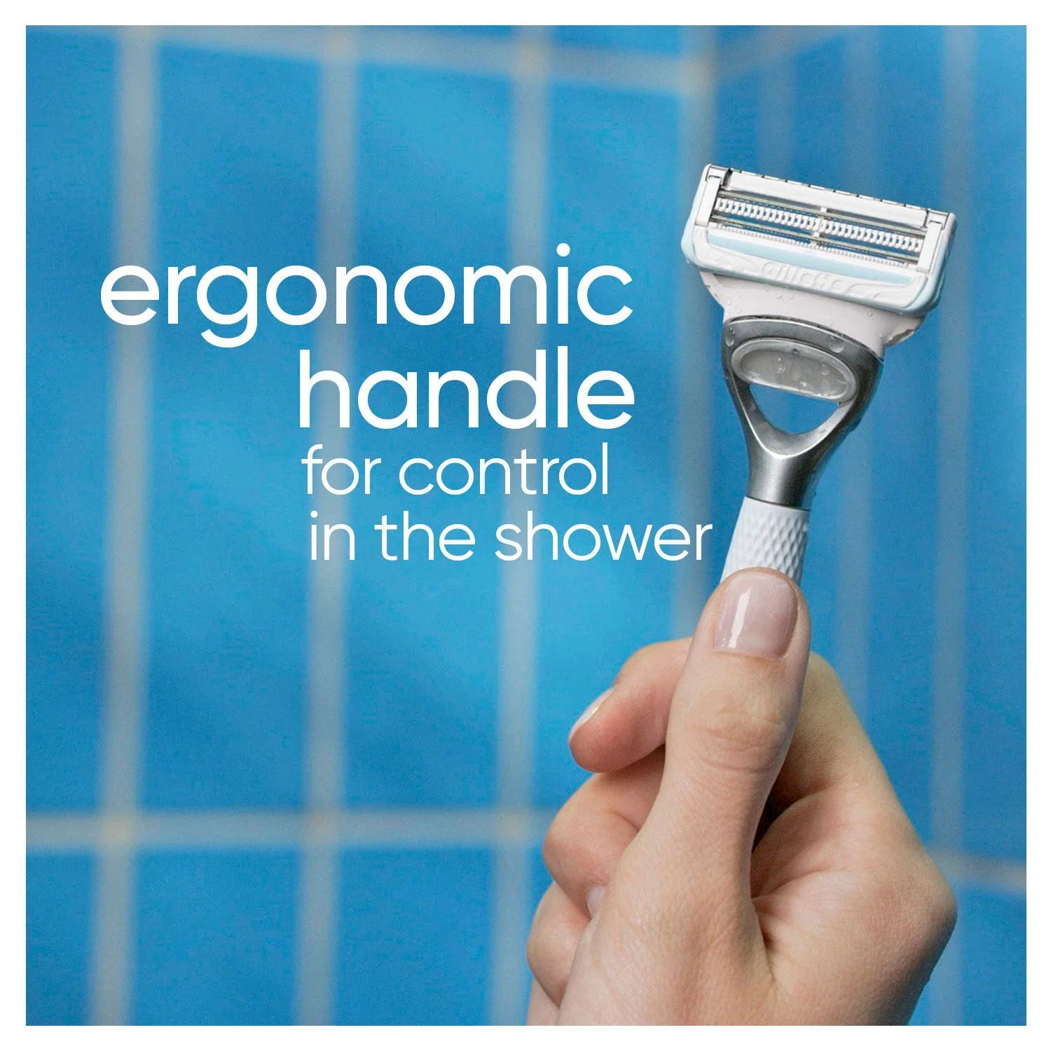 The Venus for Pubic Hair and Skin razor features a patented Irritation Defense Bar and optimally spaced blades that allow for a close shave while minimizing skin contact. This women’s razor also includes a precision trimmer on the back of the blades for navigating tricky areas and an ergonomic handle with a rubber-like grip for control in the shower.