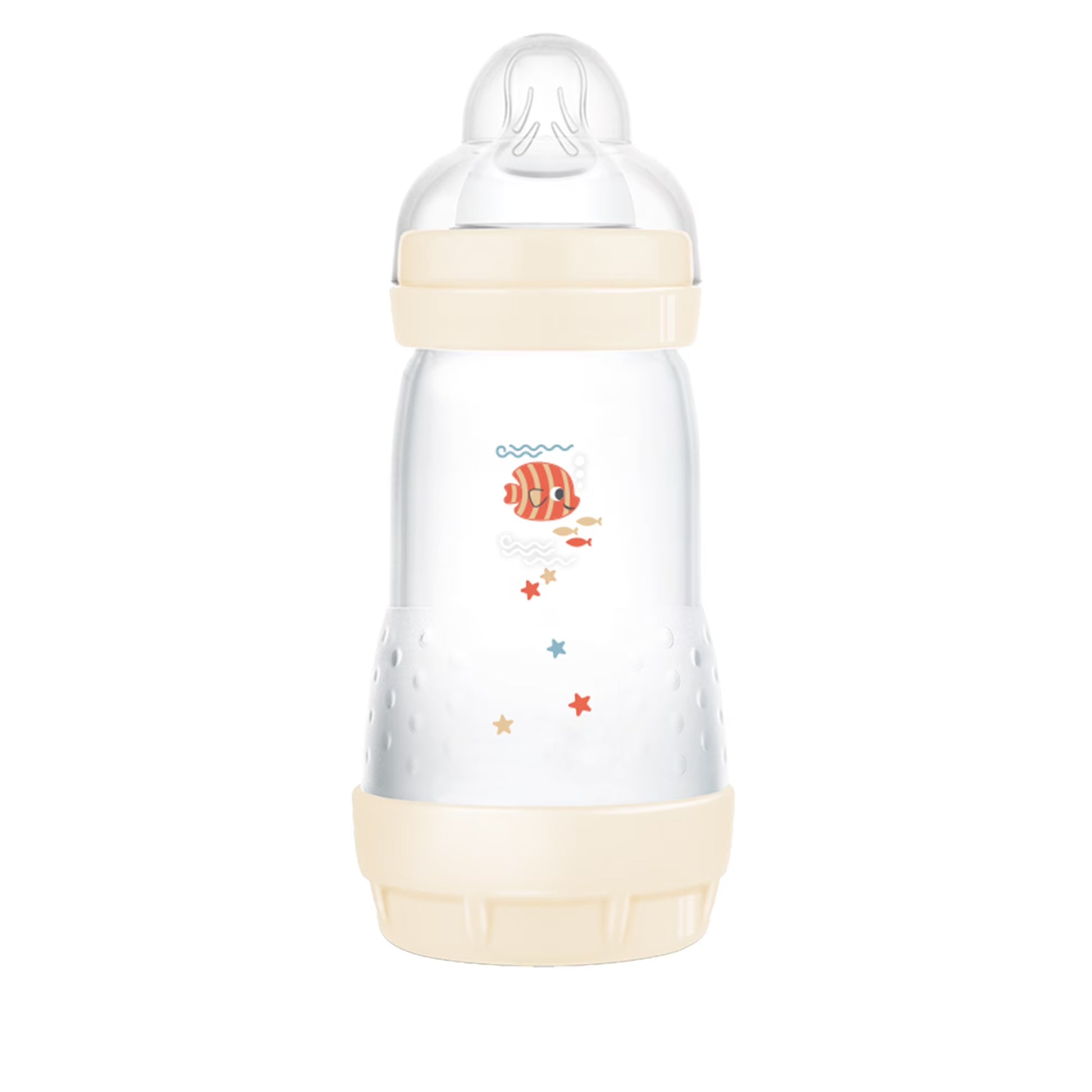 MAM Easy Start Self-Sterilizing Anti-Colic Bottle – the ideal bottle for newborns. At MAM we work with medical experts to anticipate your baby boy or girl’s needs from day one. Whether you’re using baby formula or expressed breast milk, MAM bottles will support you every step of the way — the elongated nipple shape feels just like mom so you can easily switch between breastfeeding and bottle feeding. Our MAM Easy Start Self-Sterilizing Anti-Colic Bottle is the perfect fit for newborns, specially designed to minimize colic symptoms while feeding. The innovative vented base allows for an even drinking flow, helping to reduce colic for 80%* of babies. Each MAM Anti-Colic Bottle is self-sterilizing in three steps, making it easy to feed your baby when you don’t have a bottle sterilizer on hand: fill in the base with 20ml of water, put the nipple on the base and close the bottle. Heat the bottle in the microwave for three minutes and it’s done! The bottle is made from BPS and BPA free materials, and the removable bottom makes clean-up a snap. It comes with a MAM Medium Flow Silicone Nipple for babies 2 months and older, accepted by 94% of babies.** Our bottles for babies make perfect baby shower gifts! *Field study, Austria 2011, tested with 73 mothers of colicky babies / Market research, USA 2010, tested with 35 mothers of colicky babies. **Market research 2010-2020, tested with 1,572 babies