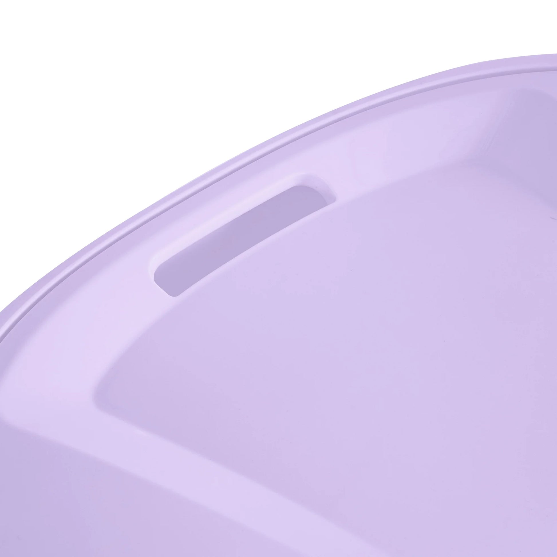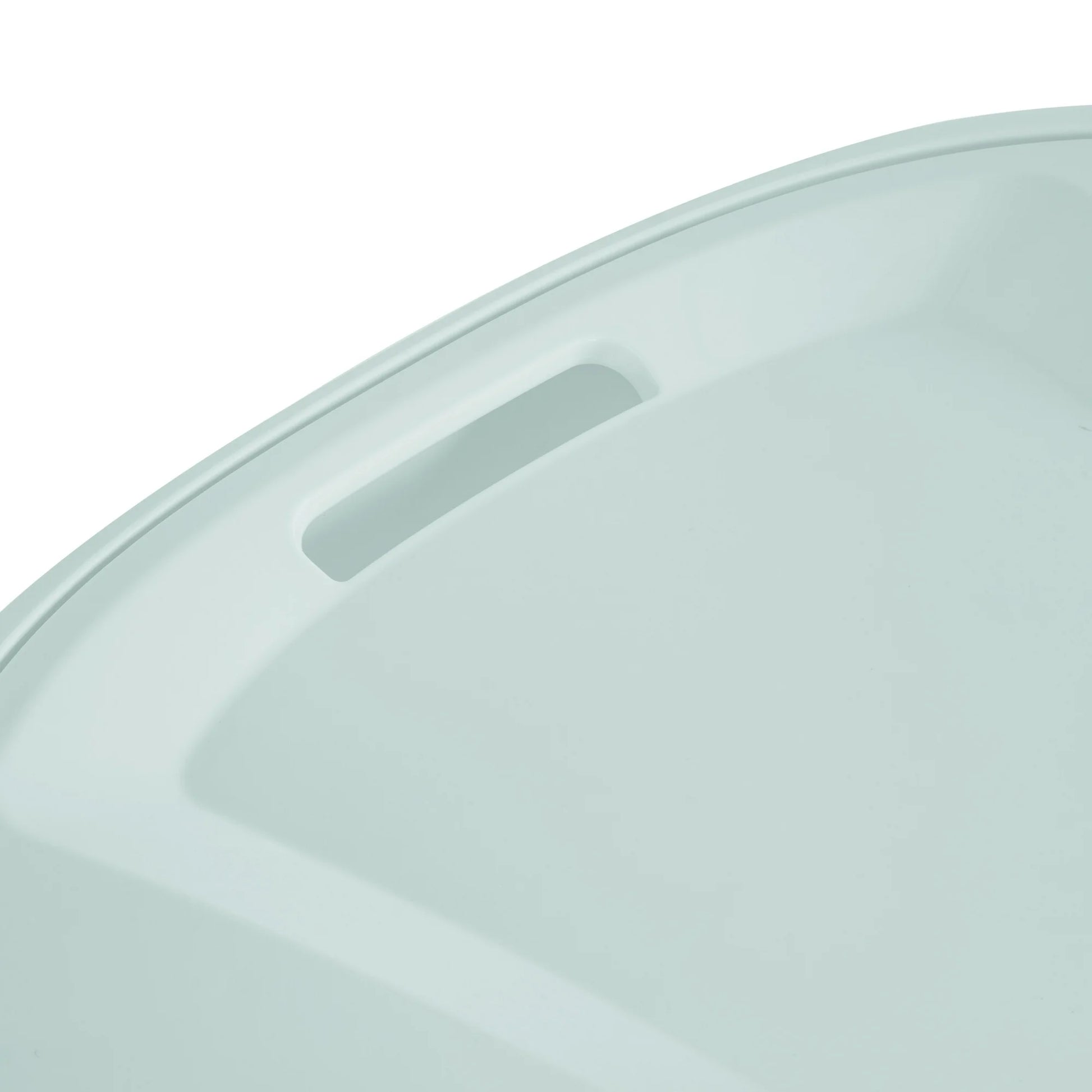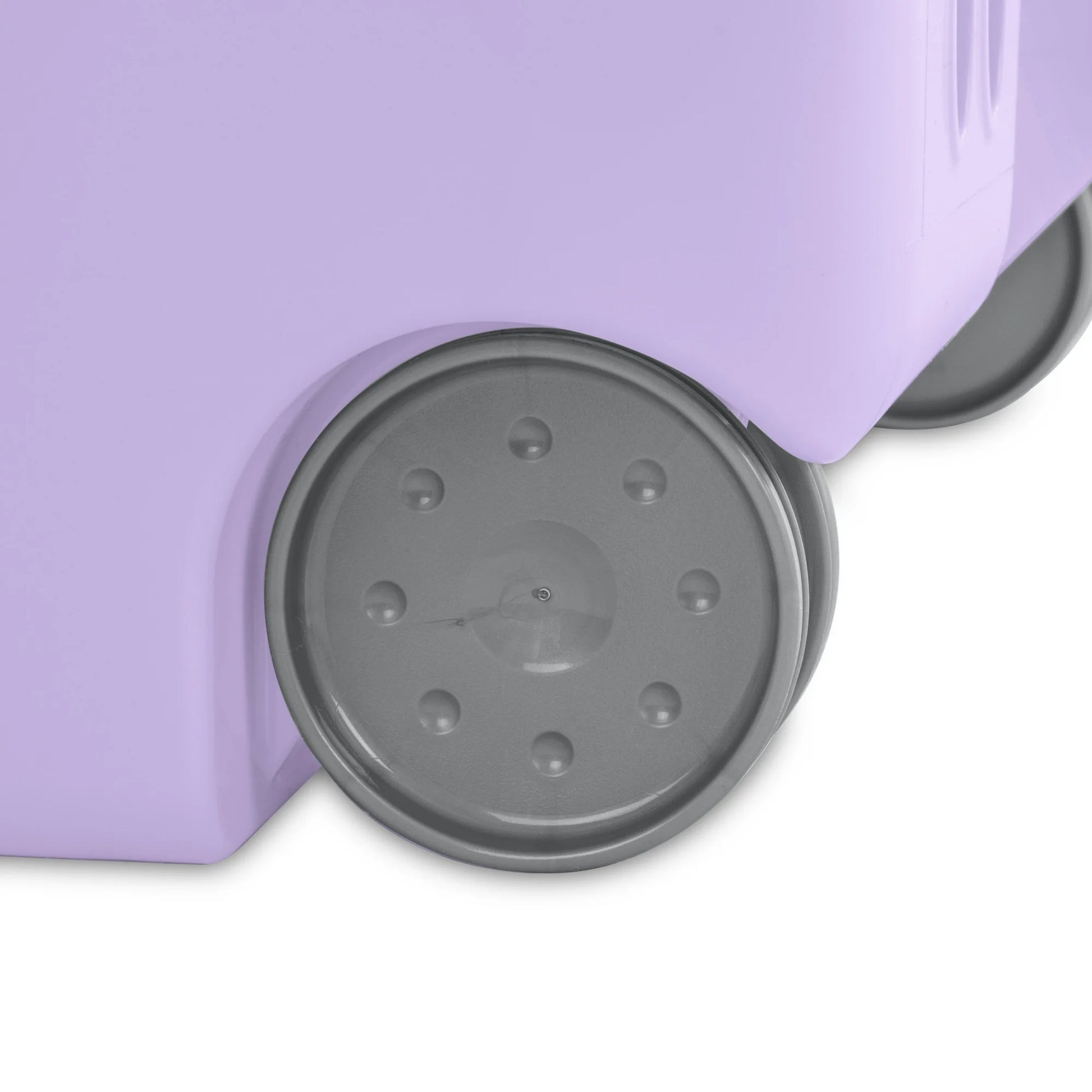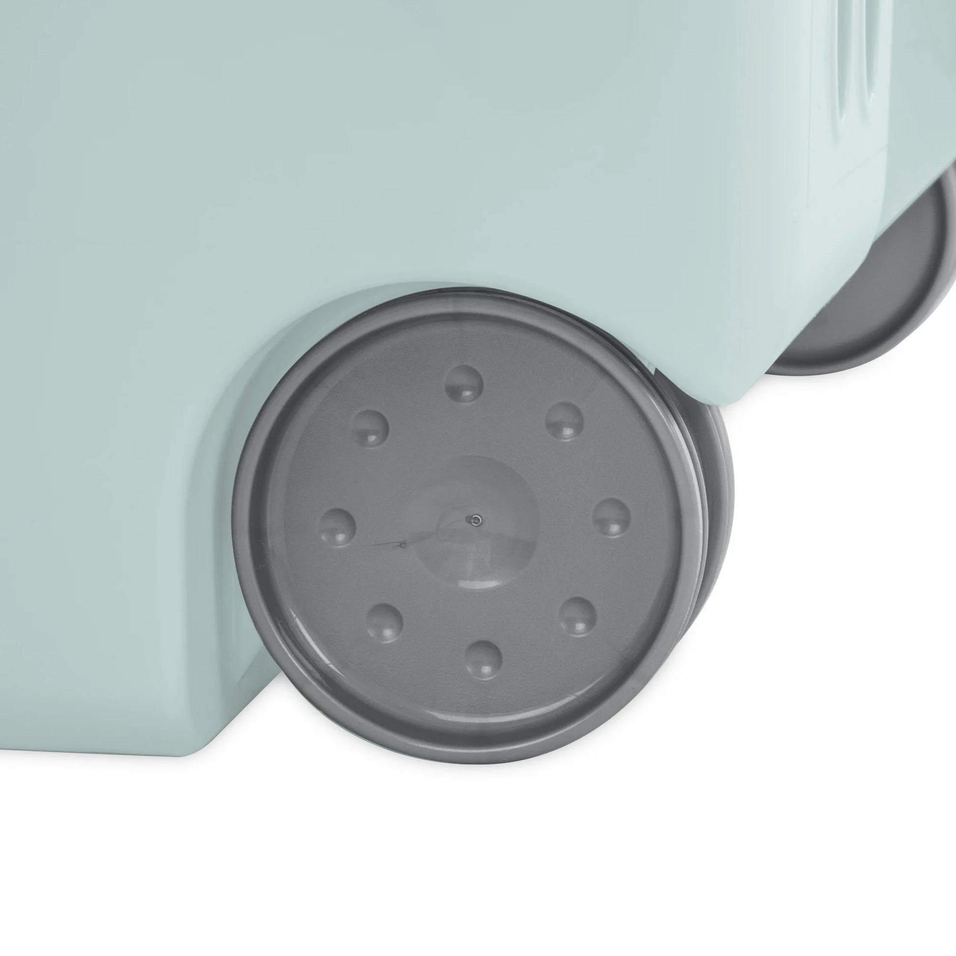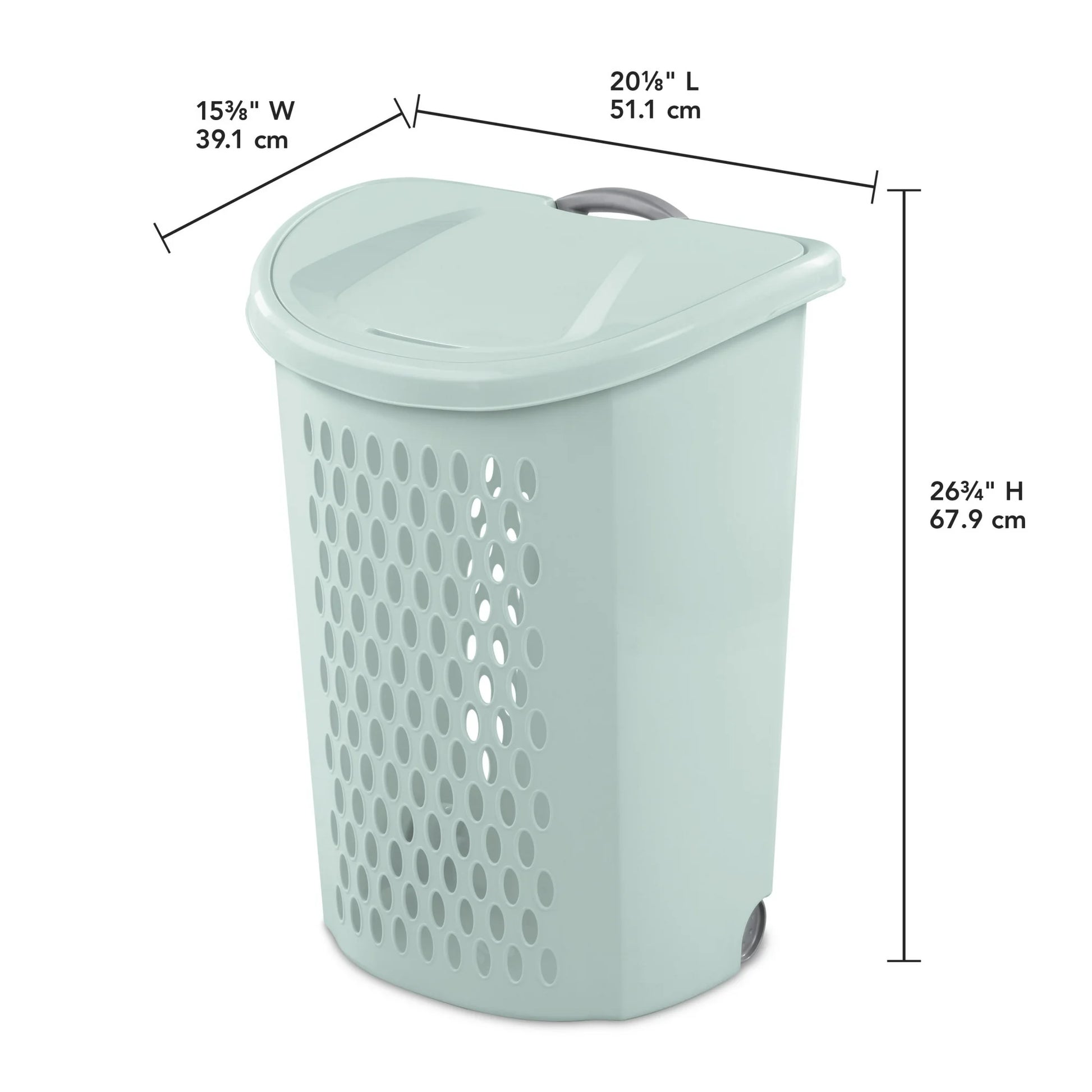 Moving laundry around your home just got easier with the Sterilite Ultra™ Wheeled Hamper. It features smooth gliding wheels and a retractable handle that pulls out to easily transport clothes to and from the laundry room, making laundry day less of a chore. For situations where the hamper needs to be lifted, integrated handles on each side provide a comfortable gripping surface. The flip-top lid keeps clothes contained and neat, while a large hole pattern promotes air flow to keep clothes well ventilated. Its durable construction and reinforced rim are designed to hold up to regular day-to-day use. This hamper is ideal for storing dirty clothes and transporting laundry, making it the perfect solution for those living in apartments or dorm rooms. The overall assembled dimensions of this item are 21" L x 13 3/4" W x 28 3/8" H.