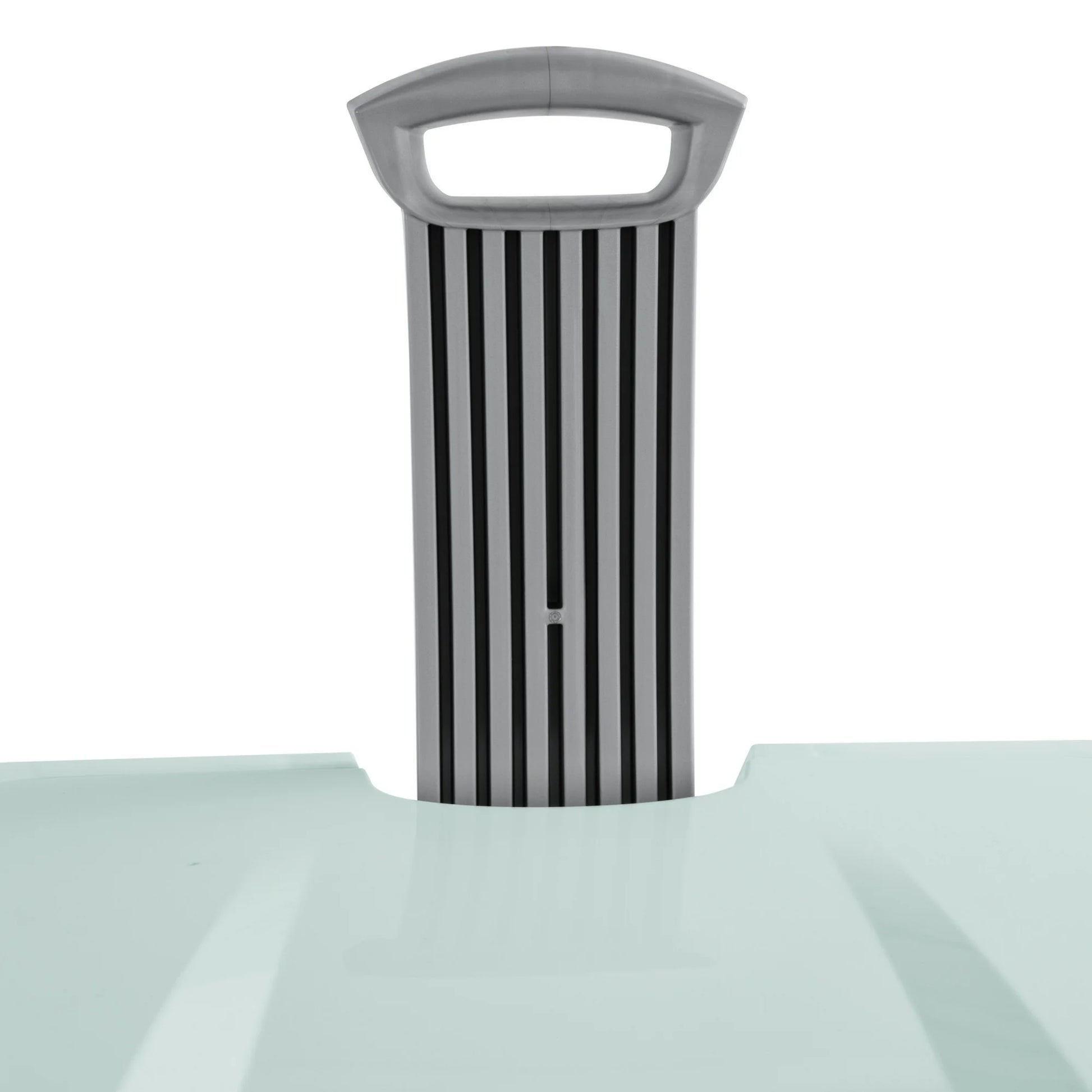 - Retractable handle provides secure grip and pushes down and out of they way when not in use